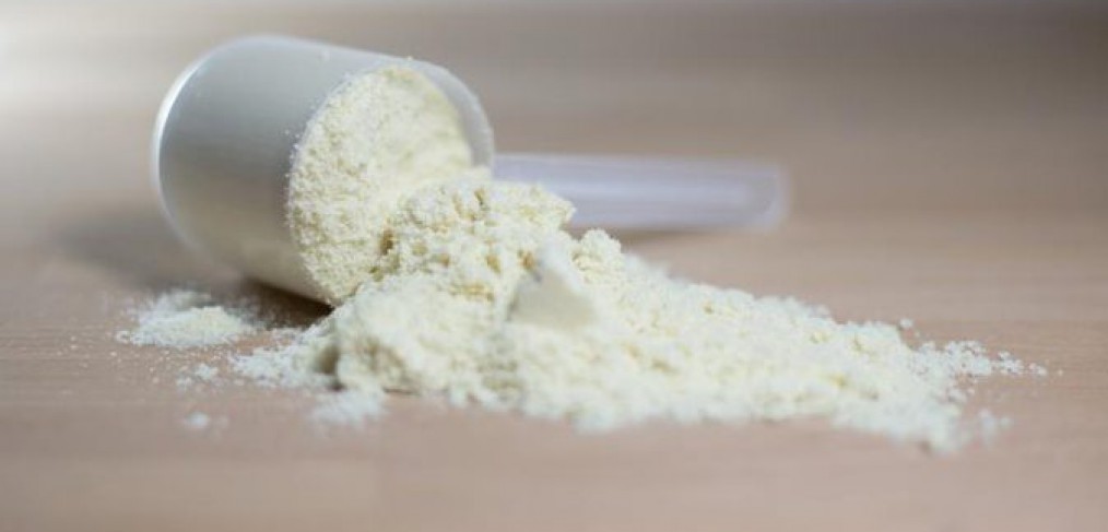 Whey powder is a common protein supplement made by dehydrating whey, the liquid by product of cheese production.
